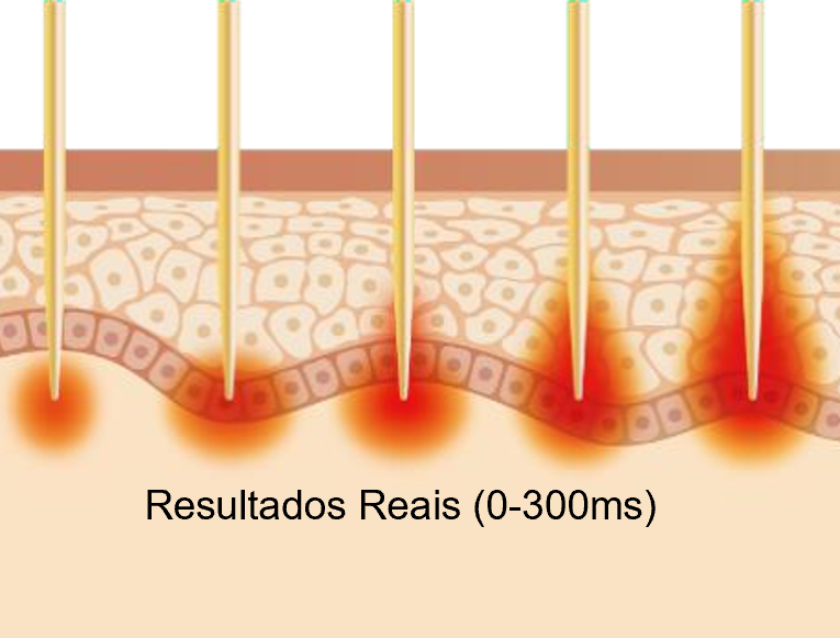 Com agulhas não isoladas e revestidas em ouro em toda a sua superfície, sendo as mais finas do mercado e com profundidade a partir de 300 μm, o equipamento atua com alta precisão na derme papilar.